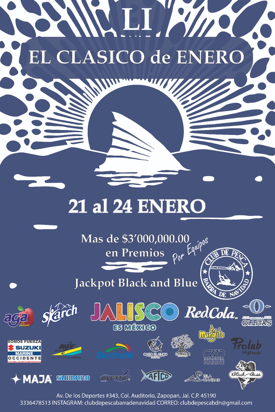 Participa en “El Clásico de Enero”, el torneo que marca el inicio de la temporada de pesca deportiva en Barra de Navidad. Tres días de competencia en altamar que reúnen a pescadores de todo el país, con una bolsa total superior a $3,000,000 MXN en premios garantizados.